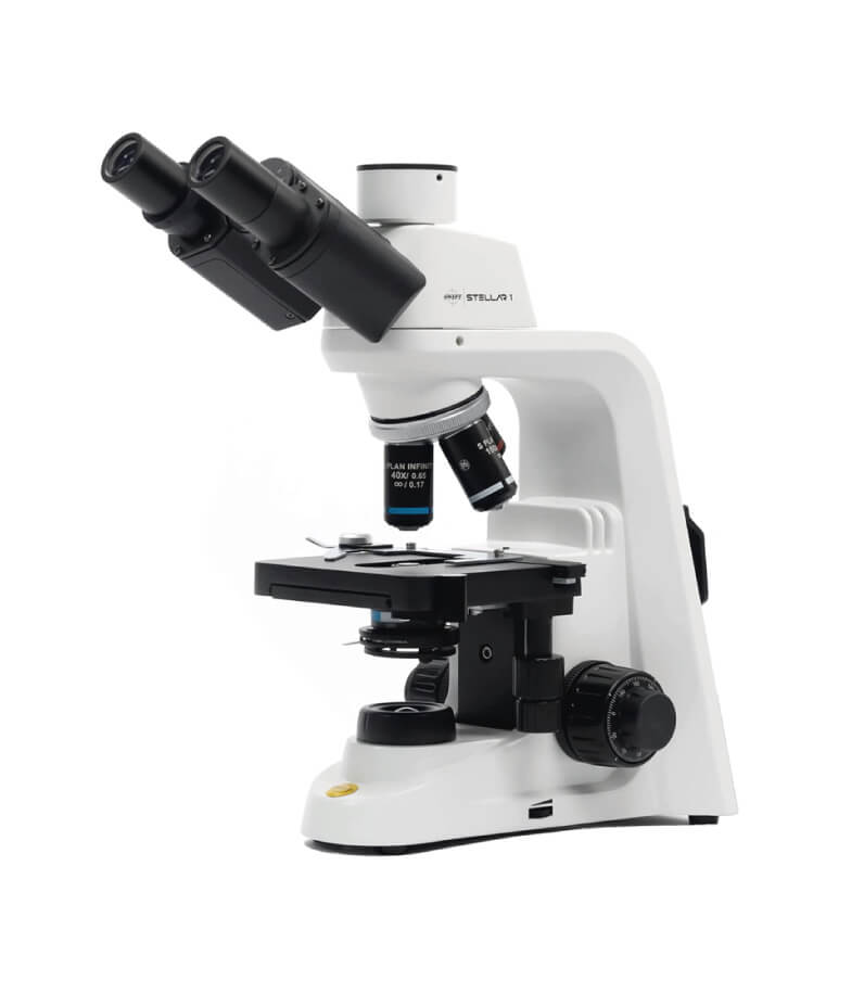 El Stellar 1 Pro trinocular ofrece una serie de paquetes con varios métodos de observación de campo claro, campo oscuro o contraste de fase para cumplir con los requisitos específicos en una variedad de campos de educación e investigación. El paquete estándar viene con un cabezal giratorio Siedentopf, dos oculares de vidrio intercambiables, objetivos de campo claro corregidos Plan Infinity: 4X, 10X, 40X y 100X (aceite), que brindan 6 niveles de aumento entre 40X y 2500X para ver pequeños detalles de portaobjetos de muestras de médicos, estudiantes de ciencias de laboratorio, secundaria y universitarios, y aficionados entusiastas por igual.